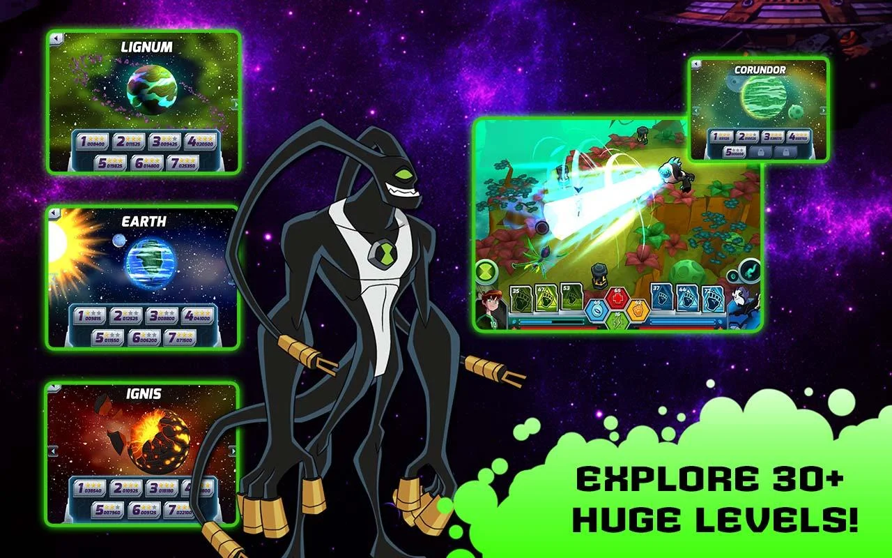 اللعب باben10 و16 وحش و 10 اسلحة و اكتشف 31 مرحلة