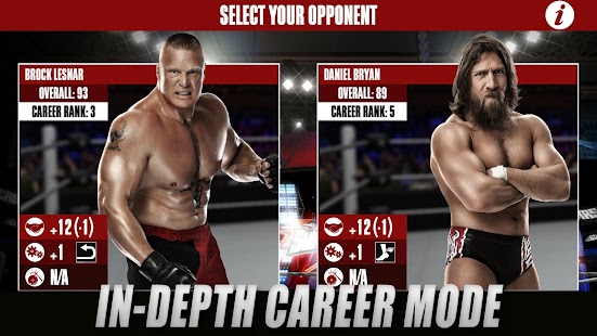 • Career Mode: Choose a Custom or WWE Superstar and take him through his WWE journey. Earn Respect, upgrade your skills, earn titles, and achieve goals to earn your way to the WWE Hall of Fame.